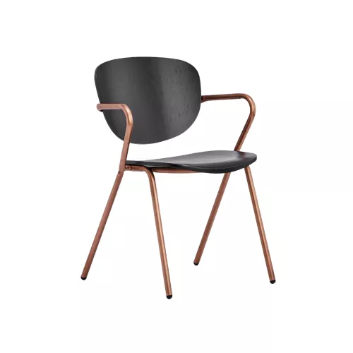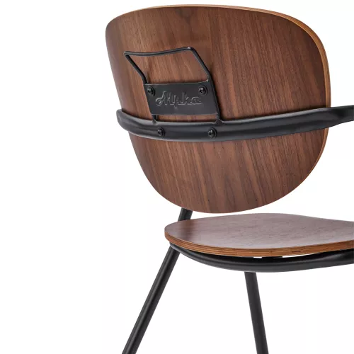 Alphie A este un scaun metalic cu brațe, având un cadru din oțel și șezut și spătar din furnir. Structura sa elegantă poate fi personalizată pentru a se adapta diverselor stiluri de design interior. Este ideal pentru locații HoReCa care doresc confort și stil.