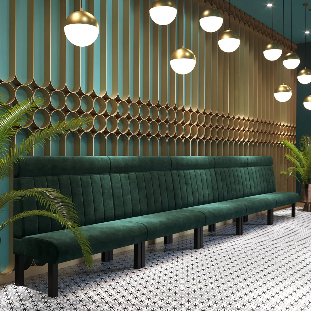 Această banchetă customizabilă în stil american aduce un aer retro spațiului tău horeca. Este prevăzută cu burete de înaltă densitate pentru confort susținut în condiții de utilizare intensă. Poate fi realizată într-o gamă variată de textile profesionale sau piele ecologică, iar pentru o personalizare completă, clientul are posibilitatea de a trimite materialul propriu de tapițerie.