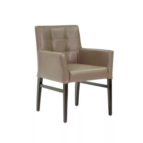 Bernard A Square Capitons este un scaun din lemn cu brațe, confortabil și elegant, ideal pentru orice spațiu horeca. Are un cadru din fag disponibil în diverse nuanțe, spătar cu cusături decorative tip capitonaj și tapițerie durabilă din materiale profesionale sau piele ecologică.
