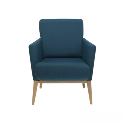 Fotoliul Bowen are picioare solide din lemn de fag și este complet tapițat pe șezut, spătar și cotiere pentru confort maxim. Personalizabil cu o gamă largă de materiale profesionale sau piele ecologică pentru uz intens, plus diverse nuanțe de lemn. Ideal pentru lounge-uri, holuri și locații horeca.