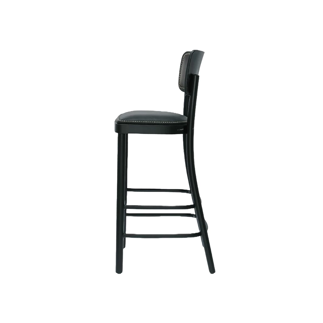 Scaunul de bar din lemn Bridged BK combină eleganța clasică cu confortul modern. Având o structură din lemn masiv de fag și un suport pentru picioare din lemn, are un șezut și spătar tapițate, evidențiate prin cuie decorative. Disponibil într-o gamă largă de țesături profesionale sau piele ecologică și multiple culori de pete de lemn, perfect pentru baruri și spații horeca.