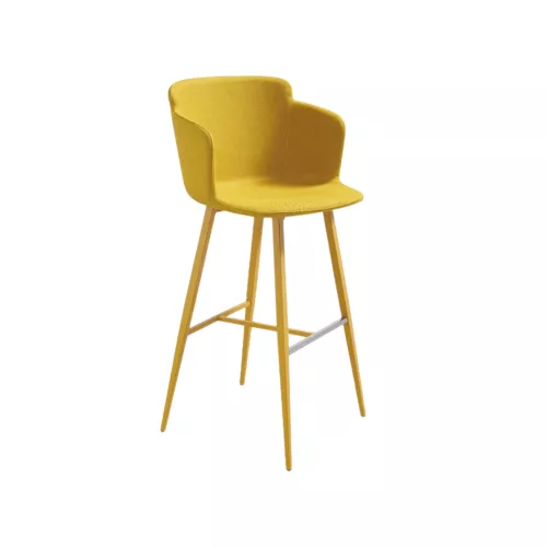 Scaun de bar fix, cu brațe și bază din metal în patru picioare, având scoică tapițată disponibilă în material textil, piele sau piele ecologică. Versiunea cu scoică din plastic este potrivită pentru utilizare în exterior, oferind o soluție versatilă pentru spații interioare și terase. Disponibil în două înălțimi – H65 și H75 – acest model îmbină eleganța, confortul și rezistența, fiind ideal pentru baruri, cafenele și restaurante moderne.