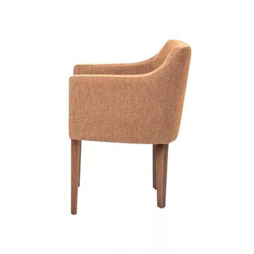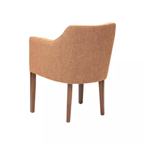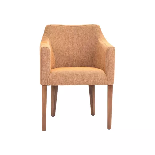 Scaunul Carmin oferă confort și stil deosebit, datorită brațelor înclinate și șezutului complet tapițat. Structura este realizată din lemn de fag, finisată cu lac poliuretanic rezistent, disponibilă în diverse nuanțe de lemn. Spuma de înaltă densitate asigură durabilitate și confort sporit în utilizarea intensivă.