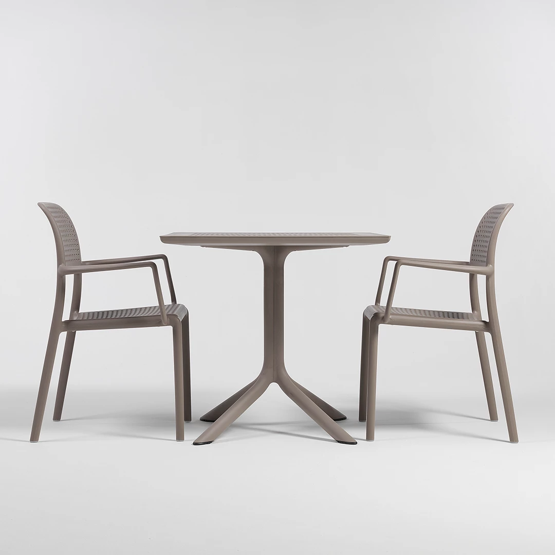 Masa Clip este soluția ideală pentru spațiile profesionale de luat masa în aer liber, combinând durabilitatea, stilul și caracterul practic. Proiectată cu o structură robustă din polipropilenă, aceasta rezistă la utilizare intensă în restaurante, cafenele, bistrouri și terase aglomerate. Disponibilă într-o gamă largă de culori sofisticate - alb, antracit, tortora, agave și tutun - Clip se adaptează perfect oricărui decor, creând o atmosferă coerentă și primitoare. Construcția sa ușoară, dar robustă, asigură o repoziționare ușoară, menținând în același timp stabilitatea și performanța de lungă durată, fiind perfectă pentru mediile comerciale unde fiabilitatea și estetica sunt la fel de importante.