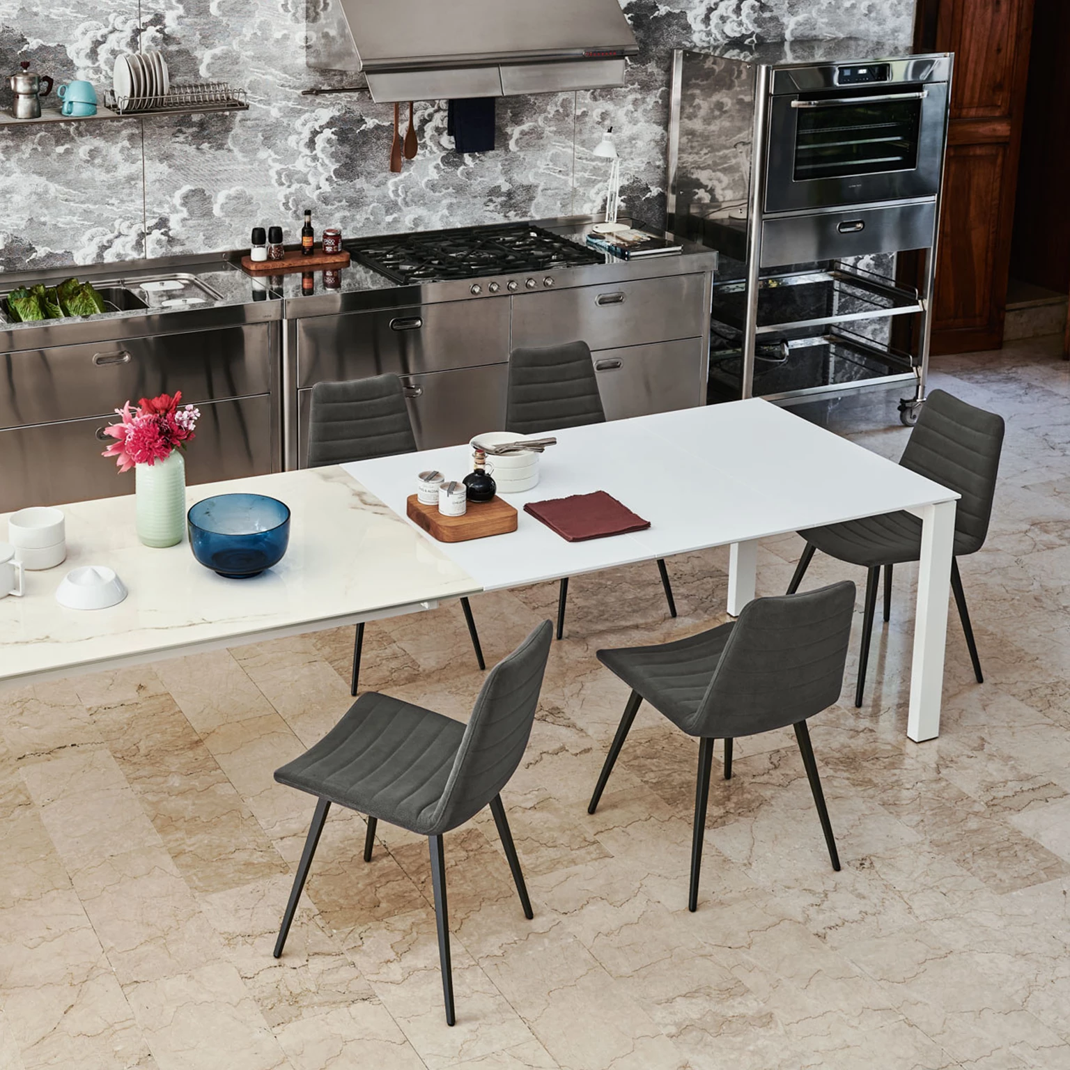 Cover S M Q TS este un scaun tapițat cu un design modern, creat pentru spații horeca. Are un cadru din oțel și o bază cu patru picioare din metal lăcuit, disponibilă în mai multe culori. Tapițeria este oferită în textile profesionale sau piele ecologică. Potrivit pentru restaurante, cafenele și spații de servire intens circulate.