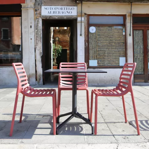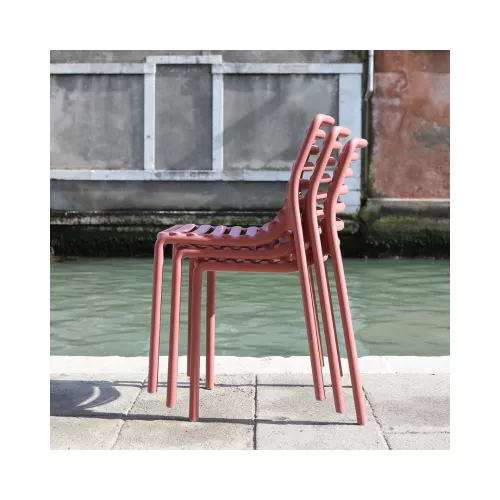 Doga S este un scaun monobloc fără brațe, fabricat din rășină de polipropilenă cu fibră de sticlă, colorată uniform și cu aditivi UV. Reciclabil, stivuibil, cu finisaj mat și picioare antiderapante. Disponibil în 8 culori. Pernă disponibilă la comandă.