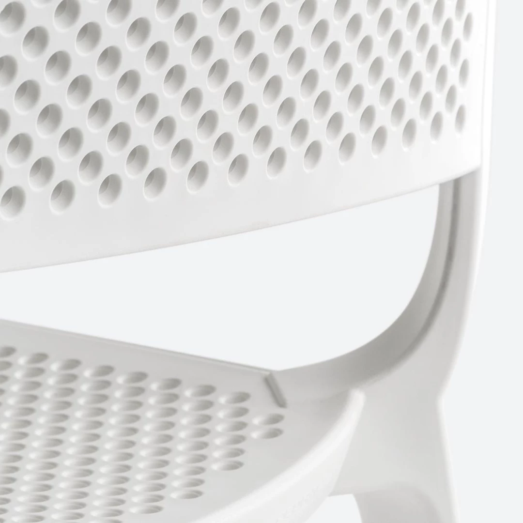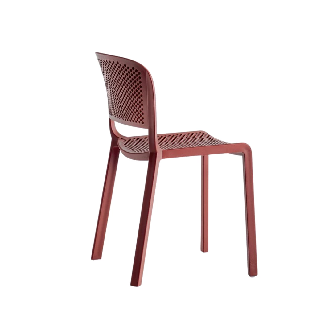 Dome 261 este un scaun de exterior din polipropilenă, cu șezut și spătar perforat pentru un plus de confort și design modern. Rezistent la UV, antistatic și suprapozabil, este ideal pentru terasele horeca. Disponibil în mai multe culori vibrante.