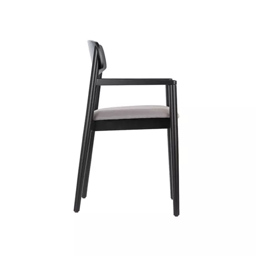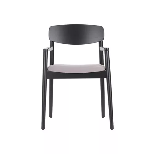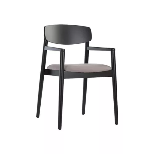 Elly A este un fotoliu din lemn frumos lucrat, realizat din lemn masiv de fag și placaj de fag, conceput pentru a oferi atât durabilitate, cât și o senzație ușoară. Scaunul tapițat asigură confort, în timp ce spătarul elegant din furnir adaugă un plus de rafinament oricărui interior. Perfect pentru restaurante, cafenele și bistrouri, Elly A combină stilul atemporal cu funcționalitatea practică, fiind alegerea ideală atât pentru spații casual, cât și pentru cele profesionale. Fie folosit individual, fie ca parte a unei amenajări de ședere, acest fotoliu oferă o experiență de ședere confortabilă, elegantă și durabilă.