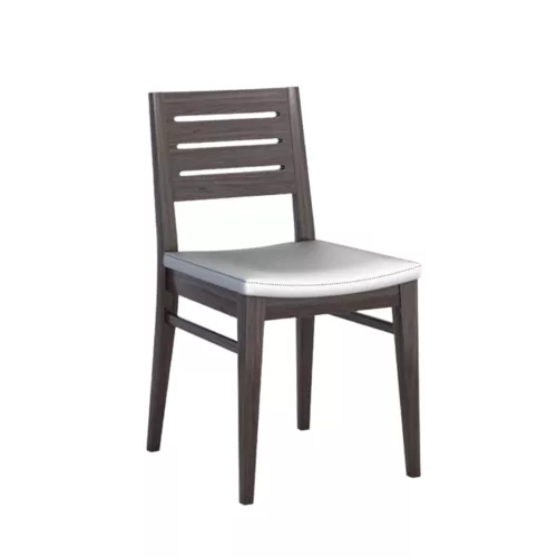 Scaun cu cadru din lemn de fag, acoperit cu lac poliuretanic durabil pentru rezistență îndelungată în condiții de utilizare intensă. Spuma de înaltă densitate asigură confort și durabilitate. Disponibil într-o gamă largă de băiuri de lemn, textile profesionale și piele sintetică. Produsul poate fi personalizat și cu materialul clientului (COM).