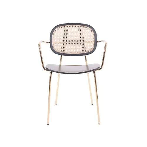 Eternity este un scaun modern cu brațe, cadru metalic, șezut furniruit și spătar din ratan. Designul său distinct permite personalizarea culorilor cadrului și lemnului, adaptându-se perfect oricărui spațiu.