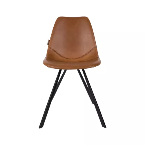 Cusăturile decorative ale șezutului cu aspect vintage, combinate cu liniile drepte ale bazei, oferă scaunului și taburetului un design contemporan elegant. Disponibil în piele sintetică neagră sau cognac.