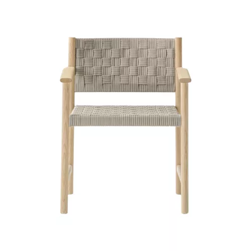 Griante reinterpretează conceptul de șezut împletit printr-un design rafinat, care combină măiestria tradițională cu precizia producției industriale moderne. Acest fotoliu de interior are un cadru din lemn de frasin certificat FSC® C114358, ce îmbină sustenabilitatea cu eleganța naturală. Picioarele cilindrice sunt sculptate cu finețe, iar cotierele ovale se subțiază elegant spre piciorul din spate, creând o linie armonioasă. Cadrul din aluminiu oferă susținere stabilă pentru șezut. Elementul central al designului îl reprezintă șezutul și spătarul împletite manual în Italia, din curele de polipropilenă complet reciclabile, cu o textură tridimensională bogată, care asigură confort și durabilitate. Ușor de demontat și cu un aspect sofisticat, Griante este expresia echilibrului dintre designul atemporal și meșteșugul responsabil.