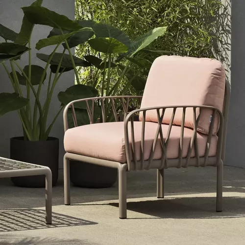 Scaunul Komodo oferă confort și stil, fiind dotat cu un kit de perne inclus în pachet. Structura este realizată din rășini de polipropilenă cu fibră de sticlă, colorate uniform și tratate cu aditivi UV pentru o durabilitate crescută. Este disponibil în mai multe variante de culori: alb, antracit, tortora și agave pentru cadru, cu perne în culorile rosa quarzo și gri. Ideal pentru utilizare atât în interior, cât și în exterior, acest scaun combină estetica modernă cu un design practic.