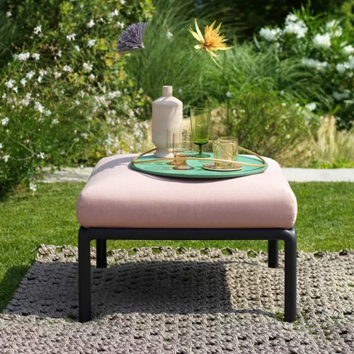 Komodo Pouf este o soluție de ședere elegantă și versatilă pentru spațiile comerciale exterioare. Cadrul din polipropilenă, consolidat cu rășini din fibră de sticlă uniform colorate și protecție UV, garantează durabilitate chiar și la soare direct. Fiecare pouf vine cu pernuță confortabilă, disponibilă în Rosa Quarzo sau Gri, iar cadrul poate fi alb, antracit, tortora sau agave. Ideal pentru restaurante cu terase, cafenele și bistrouri, Komodo Pouf combină confortul, rezistența și designul modern, aducând eleganță și funcționalitate spațiilor exterioare.