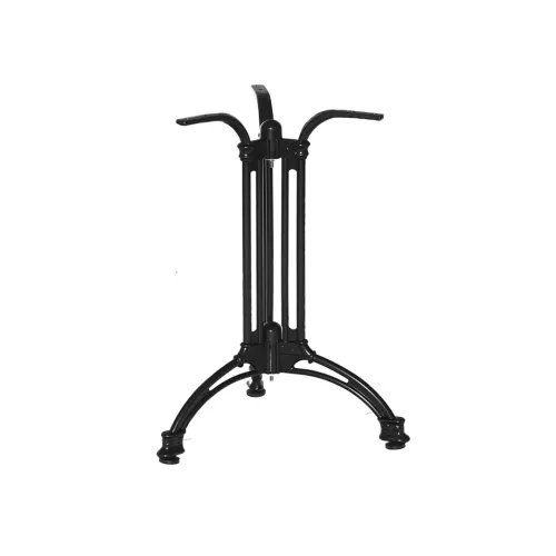MO-10 este un picior de masă pentru exterior, realizat din aluminiu turnat cu finisaj negru pudrat. Designul în 3 picioare oferă stabilitate și rezistență la intemperii. Compatibil cu blaturi de până la 70x70cm sau ⌀70cm, este ideal pentru orice locație horeca în aer liber.