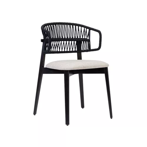 Nebulas este un scaun modern cu brațe, realizat din lemn de frasin durabil. Spătarul său distinctiv este împletit cu frânghie, oferind stil și confort. Potrivit pentru spații horeca precum restaurante și cafenele, permite personalizarea culorii lemnului și tapițeriei. Șezutul este prevăzut cu spumă densă pentru durabilitate.