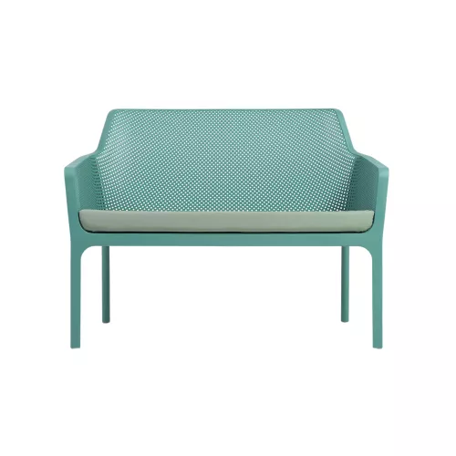 Net Bench este o bancheta elegantă și practică, creată pentru performanță ridicată în spațiile comerciale exterioare. Fabricată din polipropilenă cu fibră de sticlă monobloc, cu aditivi UV și finisaj mat rafinat, oferă durabilitate excelentă, rezistență la intemperii și stabilitate a culorii. Dispune de picioare antiderapante și design stivuibil pentru depozitare ușoară. Disponibilă în șase culori elegante pentru cadru—Alb, Antracit, Salice, Tortora, Senape, Coral—poate fi echipată cu pernă din spumă poliuretanică (densitate 28 kg/m³) în nuanțe Grey Stone, Rosa Quarzo, Senape, Denim, The Verde, Sardinia, Alb sau Gri. Complet reciclabilă, ideală pentru terase de restaurante, cafenele și bistrouri ce doresc confort, stil și calitate durabilă.