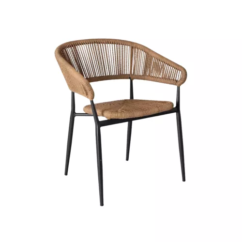 Scaunul de terasă Noah are un cadru rezistent din aluminiu antracit și este acoperit cu răchită de frânghie rezistentă la UV, care oferă un aspect modern. Disponibil în diverse culori și ușor de depozitat, este ideal pentru spații HoReCa în aer liber.