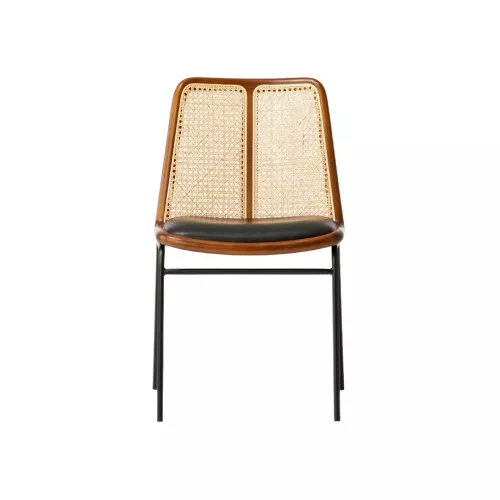Oregon este un scaun metalic elegant, cu cadru solid din oțel și șezut tapițat pentru confort. Spătarul din ratan oferă un aspect natural, iar tapițeria este disponibilă într-o gamă variată de stofe profesionale și piele ecologică. Această combinație face din Oregon o alegere versatilă și rafinată pentru spațiile HoReCa moderne.