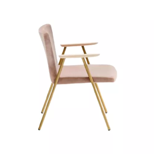 Osaka 5729 – un fotoliu rafinat cu cadru din oțel tubular cu diametrul de 20 mm, cotiere elegante din lemn de frasin și o carcasă căptușită, tapițată cu material textil, piele sau piele ecologică. Combinând confortul și stilul, este perfect pentru spațiile de relaxare de interior, creând zone de relaxare primitoare și sofisticate.