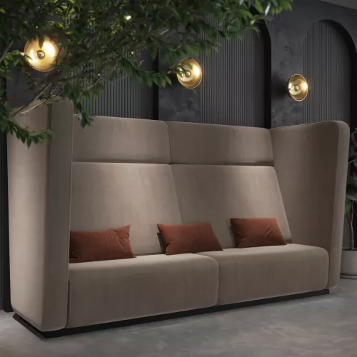 Bancheta Parleur este o banchetă modulară cu spătar înalt și cotiere, concepută pentru locații horeca. Tapițată cu spumă de înaltă densitate pentru durabilitate, este disponibilă în diverse materiale profesionale. Dimensiunile pot fi personalizate.