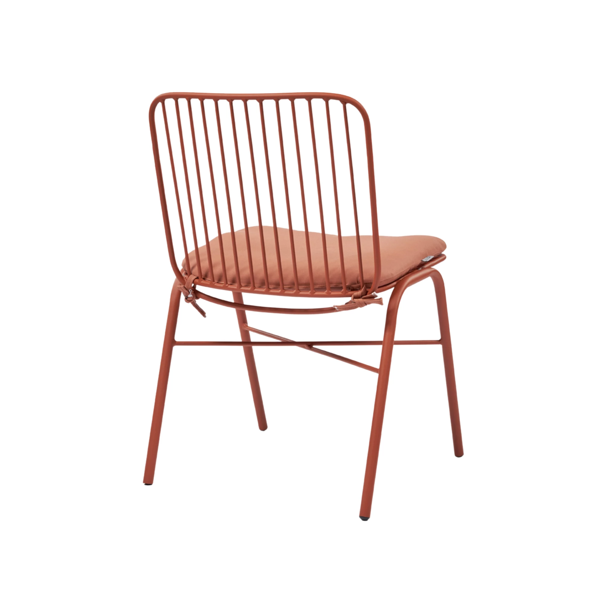 Scaun pentru exterior cu structură metalică și pernă pentru șezut, conceput pentru terase HoReCa și zone de dining în aer liber. Liniile verticale ale spătarului oferă un aspect ușor și echilibrat, iar structura metalică asigură durabilitate în utilizare intensă. Potrivit pentru cafenele, restaurante, patio-uri și zone de terasă unde sunt necesare atât confortul, cât și un design practic.