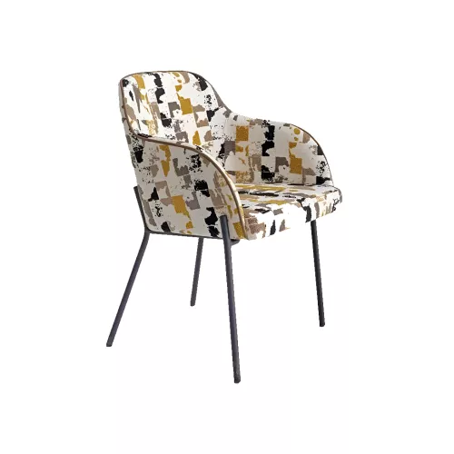Romie A este un scaun confortabil cu brațe, cu cadru din oțel vopsit în câmp electrostatic, disponibil în orice culoare RAL. Sezutul și spătarul sunt tapițate și pot fi personalizate cu o gamă variată de materiale profesionale sau piele ecologică. Potrivit pentru diverse spații horeca și stiluri de amenajare.