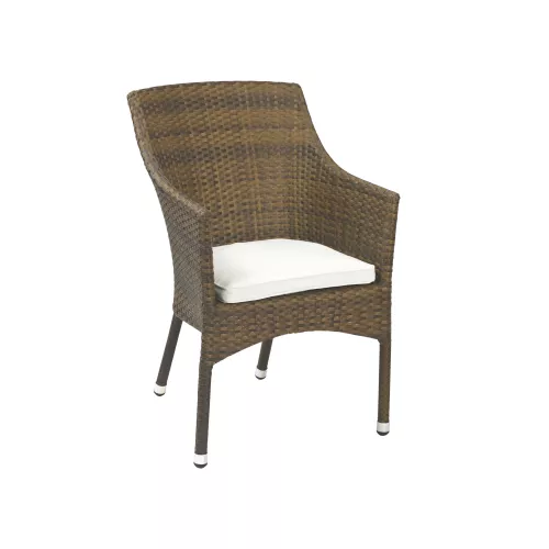 Sady este un scaun de exterior creat pentru spații horeca. Cadrul din aluminiu vopsit și șezutul/spătarul din PE-Wicker cu aspect roca oferă rezistență și un look natural. Este stivuibil, rezistent la UV și intemperii. Opțional, poate fi livrat cu pernuță tapițată pentru exterior, rezistentă la apă.
