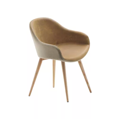 Fotoliu Sonny cu bază metalică în patru picioare. Șezut tapițat disponibil în piele, imitație de piele sau țesătură. Posibilitatea de a tapița fața și spatele în materiale sau culori diferite.