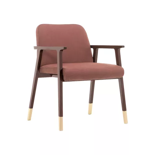 Scaunul Tenuo A combină eleganța atemporală cu confortul modern, inspirat de maeștrii designului secolului XX. Având cotiere, o structură din lemn masiv de fag și ferule rafinate din alamă, acesta emană rafinament. Șezutul și spătarul tapițate, disponibile în diverse materiale textile sau piele ecologică, îl fac ideal pentru interioarele elegante din domeniul HoReCa.