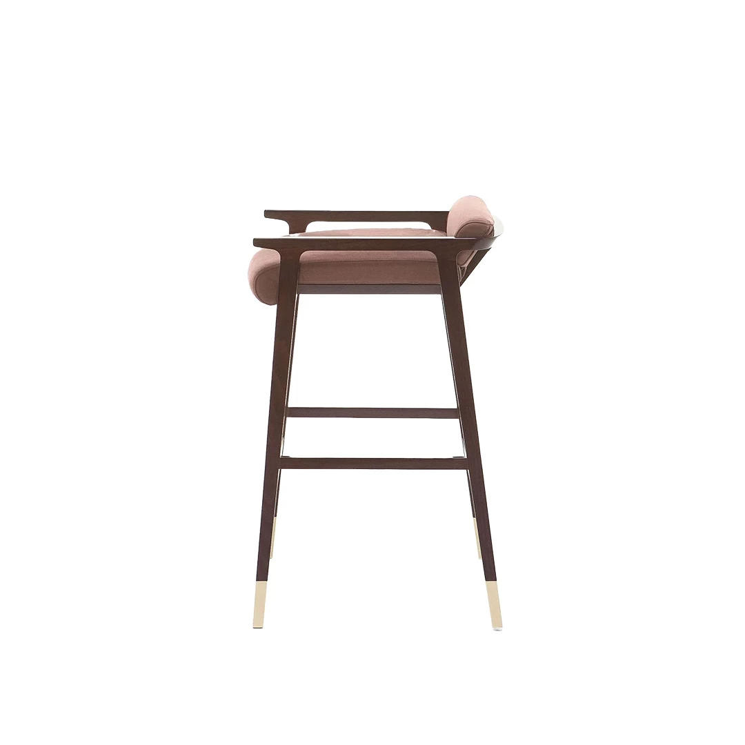 Scaunul de bar din lemn Tenuo BK combină eleganța și rafinamentul, inspirat de maeștrii designului secolului XX. Fabricat din lemn masiv de fag cu capace și suport pentru picioare din oțel inoxidabil anodizat cu alamă, are un șezut și spătar tapițate, disponibile într-o gamă largă de țesături profesionale. Perfect pentru hoteluri, baruri și spații horeca.