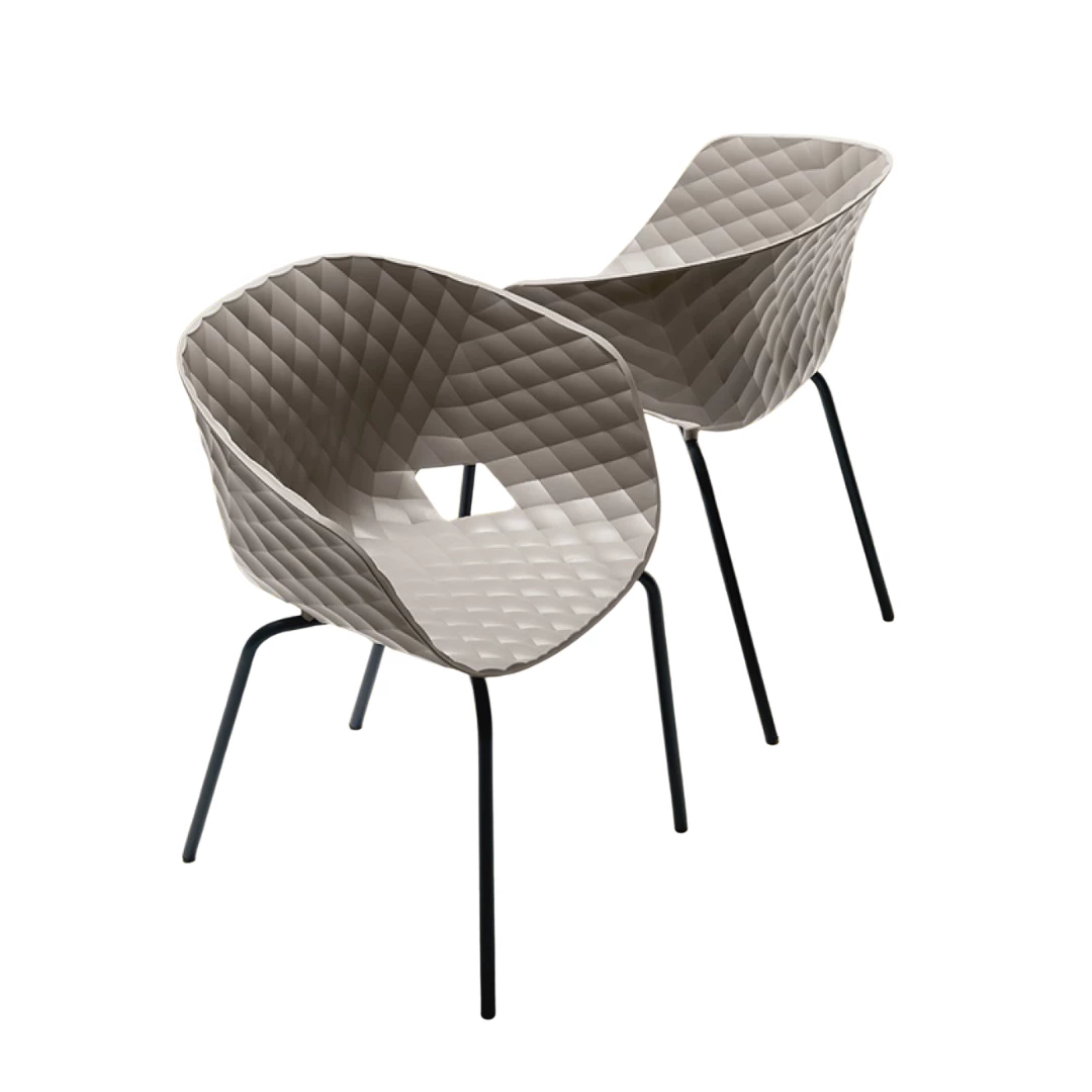 Uno 594 este un fotoliu de design elegant, cu un cadru solid din oțel pe patru picioare și o scoică confortabilă din polipropilenă. Structura metalică este disponibilă cu finisaj cromat sau vopsită în câmp electrostatic pentru utilizare la exterior, în culorile negru sau alb. La cerere, fotoliul poate fi tratat special pentru a rezista condițiilor exterioare. Livrarea rapidă este disponibilă pentru varianta cu scoică neagră pe cadru vopsit negru și cea cu scoică albă pe cadru vopsit alb.