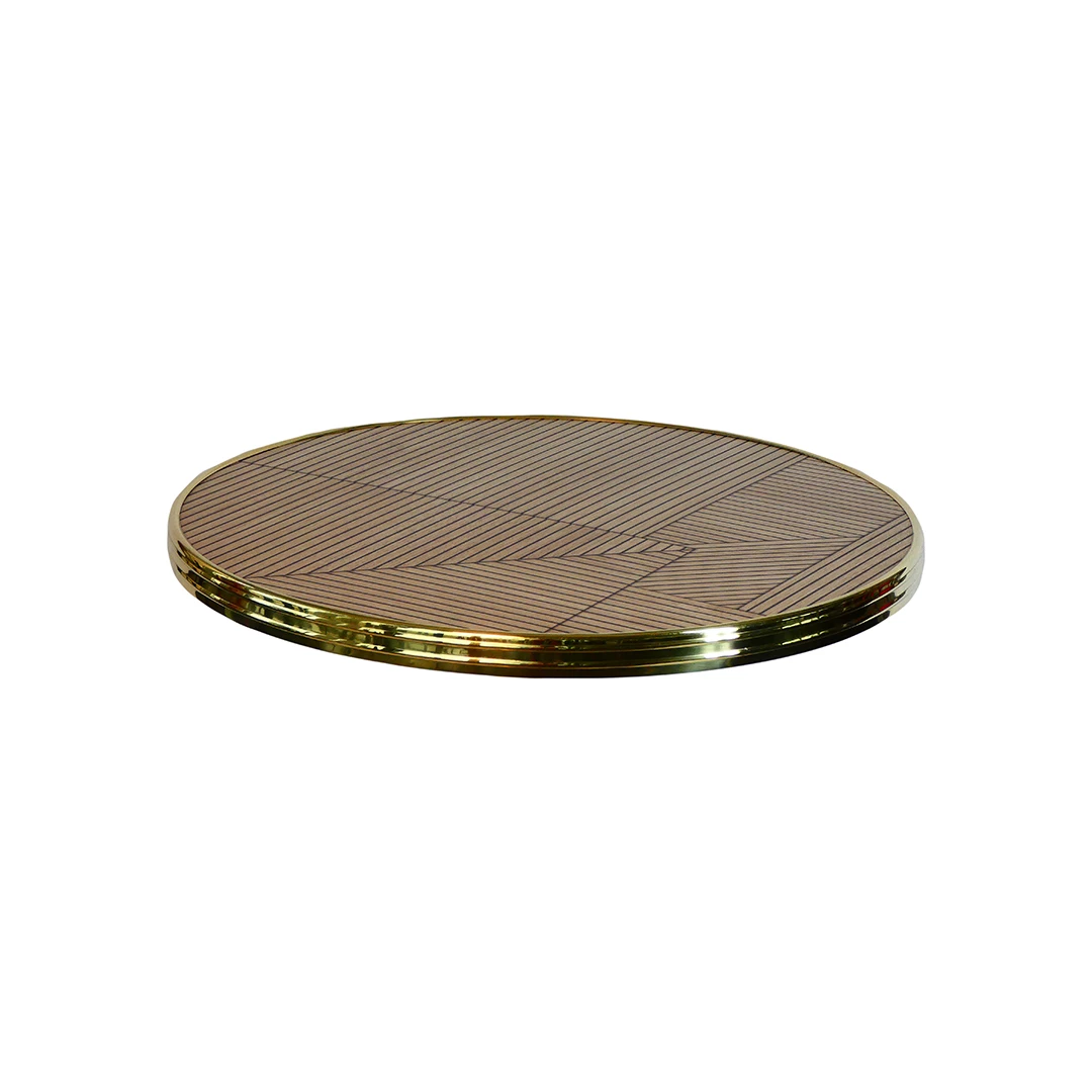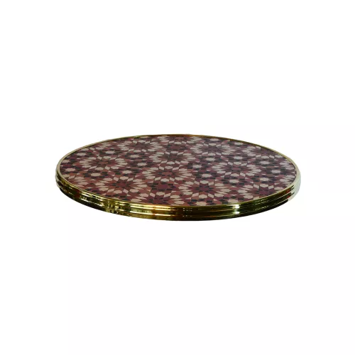 Blatul Werzalit Bistro cu inel este ideal pentru spațiile horeca, interioare sau exterioare. Prevăzut cu margine din alamă, este rezistent la raze UV și căldură, durabil, rezistent la șocuri și ușor de curățat. Disponibil în mai multe dimensiuni și decoruri.