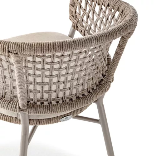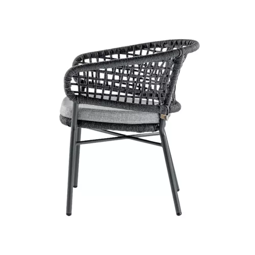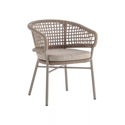 Adon este un scaun de exterior cu brațe, realizat din aluminiu durabil și îmbrăcat în frânghie acrilică rezistentă la intemperii. Perna tapițată cu material olefin îl face ideal pentru utilizare intensivă. Ușor și superpozabil, Adon se potrivește perfect pe terasele horeca.