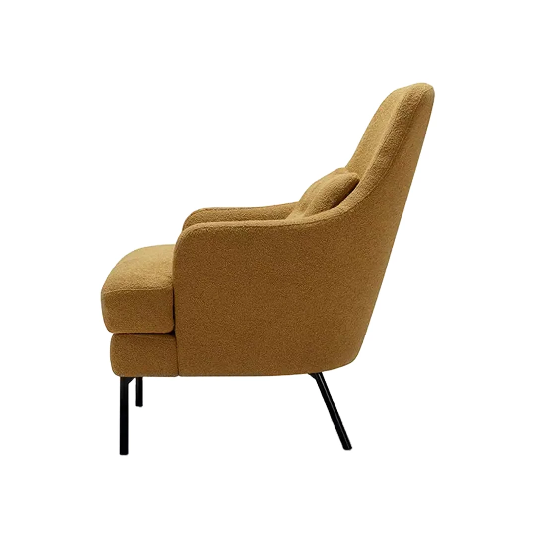 Alisson este un fotoliu elegant, tapițat, care îmbină frumusețea și designul echilibrat într-o armonie perfectă. Picioarele sale înalte și minimaliste din metal conferă șezutului, spătarului și brațelor complet tapițate un aspect ușor. Îmbogățit cu o pernă lombară suplimentară, oferă un confort primitor pentru saloane, holuri, zone de așteptare, birouri și alte spații horeca. Disponibil într-o gamă largă de țesături profesionale.