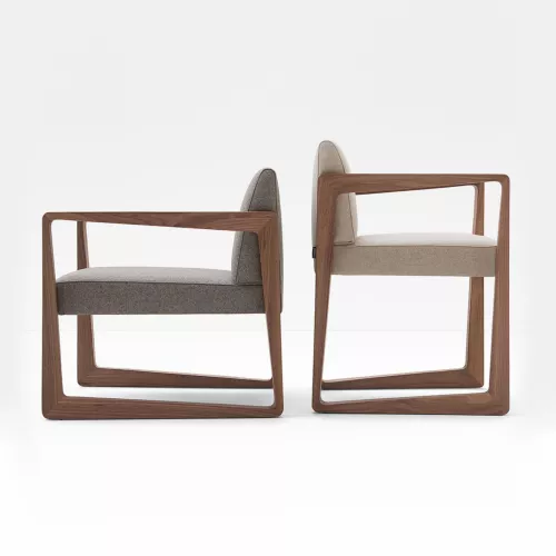 Askew 5C35 este un scaun elegant cu brațe, realizat din lemn masiv de fag, disponibil în finisaje baituite sau culori RAL. Șezutul și spătarul sunt tapițate cu materiale profesionale sau piele ecologică, ideale pentru spațiile horeca. Designul său combină stiluri clasice și moderne, potrivindu-se diferitelor concepte de amenajare.