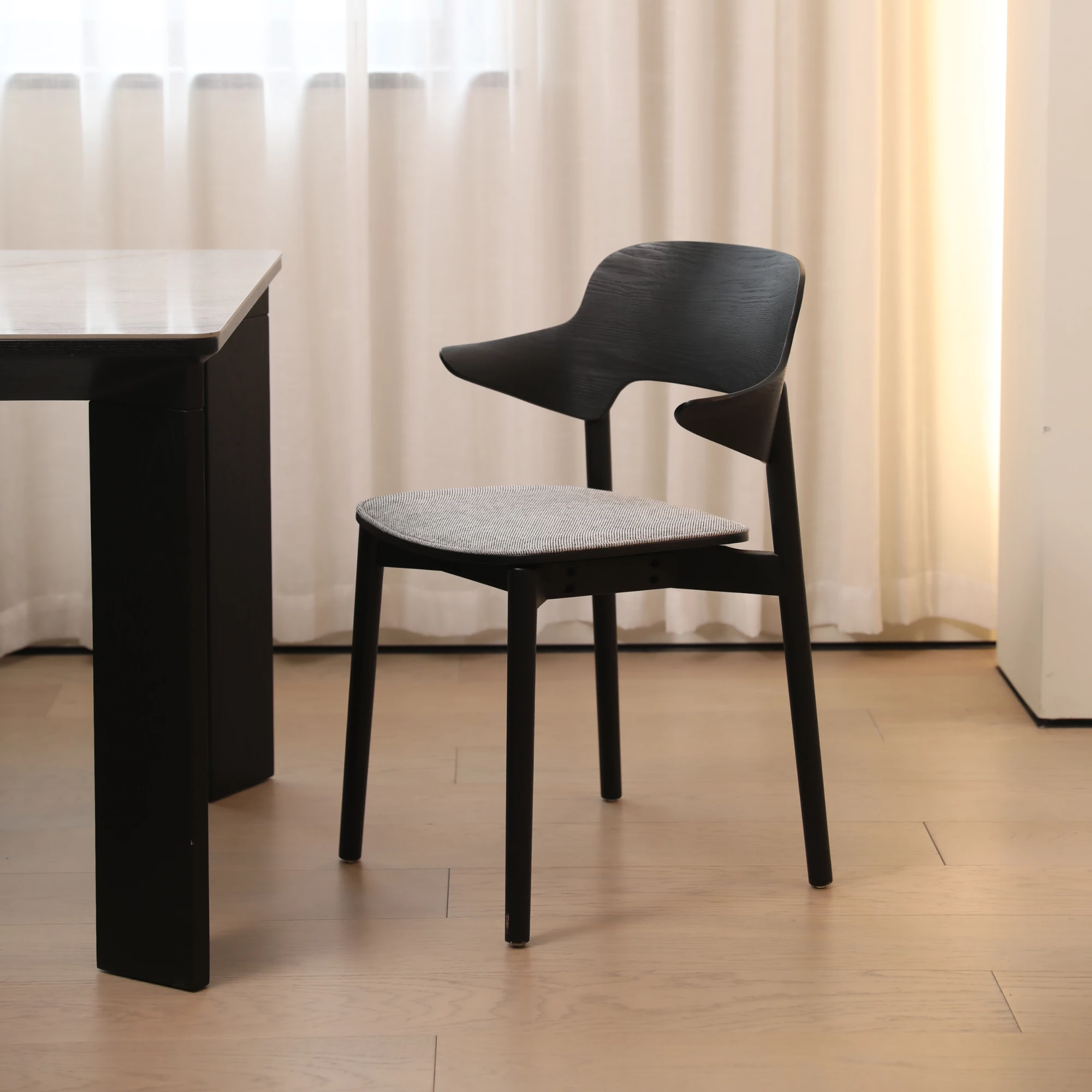 Scaun modern din stejar, cu brațe și șezut tapițat pentru un plus de confort. Realizat din lemn masiv, ideal pentru spații HoReCa elegante. Disponibil în mai multe nuanțe de lemn și tapițerii personalizabile.