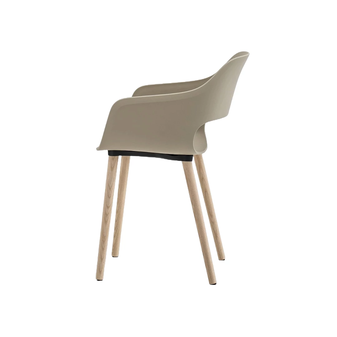 Fotoliul Babila 2755 îmbină armonios tradiția cu inovația modernă. Punctul său forte este designul simplu și esențial, ce evocă o estetică atemporală. Carcasa din polipropilenă, armata cu fibră de sticlă, este antistatică și rezistentă la razele UV. Tehnologia de injectare gaz-aer asigură o formă precisă și durabilă. Cadrul din aluminiu turnat oferă stabilitate, iar picioarele din lemn masiv de frasin sunt finisate cu lac pe bază de apă, mat (5 luciu), rezistent la zgârieturi, ce evidențiază fibra naturală a lemnului. Picioarele sunt dotate cu inserții interschimbabile: tip “15” din fetru pentru suprafețe delicate (lemn, ceramică, marmură) și tip “17” din plastic pentru pardoseli moi sau aspre (covor, beton, metal).