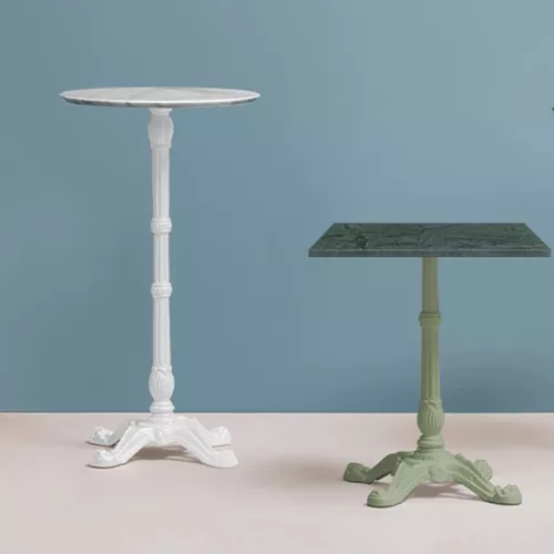 Bistrot 4100 are un strat de vopsea pulbere pentru exterior, rezistent la intemperii, ideal pentru terase și restaurante. Suportă un blat de până la ø60 cm și are o bază stabilă de 52 cm – alegerea perfectă pentru spații HoReCa profesionale.