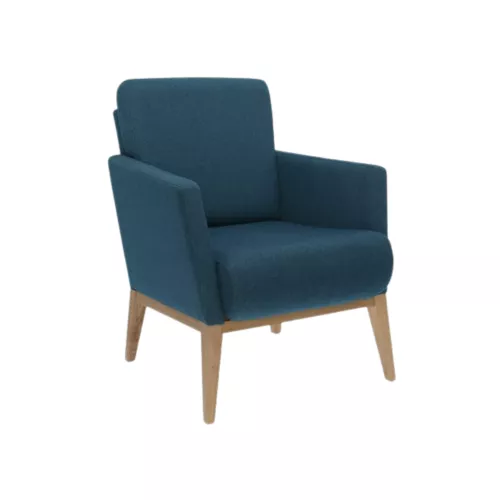 Fotoliul Bowen are picioare solide din lemn de fag și este complet tapițat pe șezut, spătar și cotiere pentru confort maxim. Personalizabil cu o gamă largă de materiale profesionale sau piele ecologică pentru uz intens, plus diverse nuanțe de lemn. Ideal pentru lounge-uri, holuri și locații horeca.