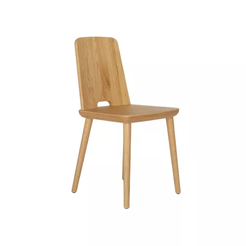Scaunul Bregenz este realizat din lemn natural de frasin, având un design liniar și versatil, ideal pentru mediile comerciale. Este ușor de mutat și transportat, datorită orificiului din spătar, poziționat la nivelul șezutului. Șezutul este din lemn de frasin solid și furniruit. Este finisat cu lac poliuretanic, asigurându-i durabilitatea în utilizarea pentru trafic comercial intens. Disponibil în diferite culori, cu finisaj deschis. Opțional, pot fi adăugate piciorușe de protecție pentru podea din plastic sau pâslă. Proporțiile sofisticate și designul riguros fac din acest scaun o piesă de mobilier utilizată pe scară largă.