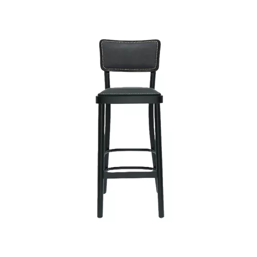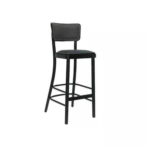 Scaunul de bar din lemn Bridged BK combină eleganța clasică cu confortul modern. Având o structură din lemn masiv de fag și un suport pentru picioare din lemn, are un șezut și spătar tapițate, evidențiate prin cuie decorative. Disponibil într-o gamă largă de țesături profesionale sau piele ecologică și multiple culori de pete de lemn, perfect pentru baruri și spații horeca.
