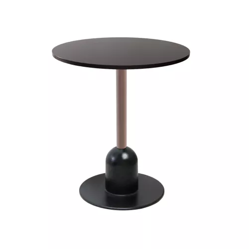 Bază de masă din fontă vopsită negru, cu coloană rotundă (Ø6 cm) și bază circulară (Ø45 cm). Suportă blaturi de până la Ø100 cm sau 80x80 cm. Ideală pentru restaurante, cafenele și spații comerciale.