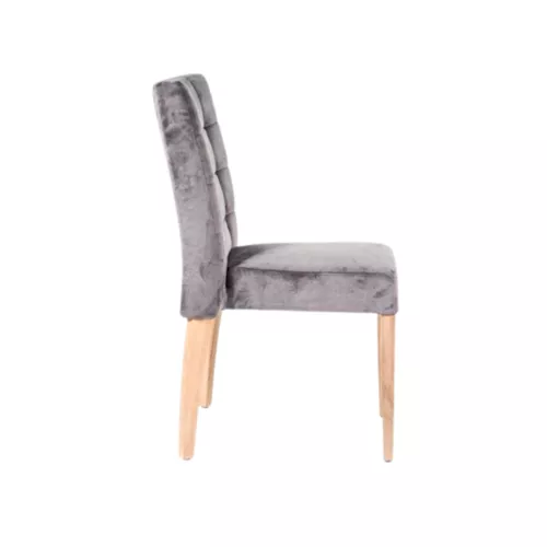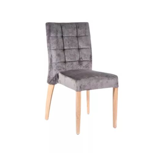 Scaun cu structură din lemn de fag și șezut/spătar tapițate, accentuate cu cusături decorative. Disponibil într-o gamă variată de materiale la cerere. Se poate personaliza și cu materialul clientului, pentru a se potrivi perfect cu designul interior.