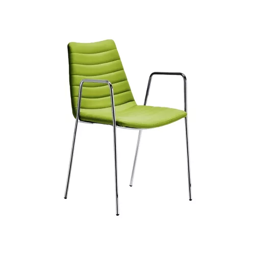 Scaunul tapițat Cover P M TS cu cotiere metalice îmbină rafinamentul și eleganța cu designul funcțional. Baza sa metalică cu patru picioare, cu finisaj lăcuit sau cromat, susține o carcasă tapițată confortabilă. Complet suprapunabilă până la 4 piese, este disponibilă într-o gamă largă de țesături profesionale sau piele ecologică pentru interioare versatile.