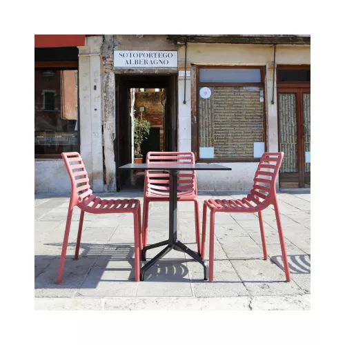 Doga S este un scaun monobloc fără brațe, fabricat din rășină de polipropilenă cu fibră de sticlă, colorată uniform și cu aditivi UV. Reciclabil, stivuibil, cu finisaj mat și picioare antiderapante. Disponibil în 8 culori. Pernă disponibilă la comandă.