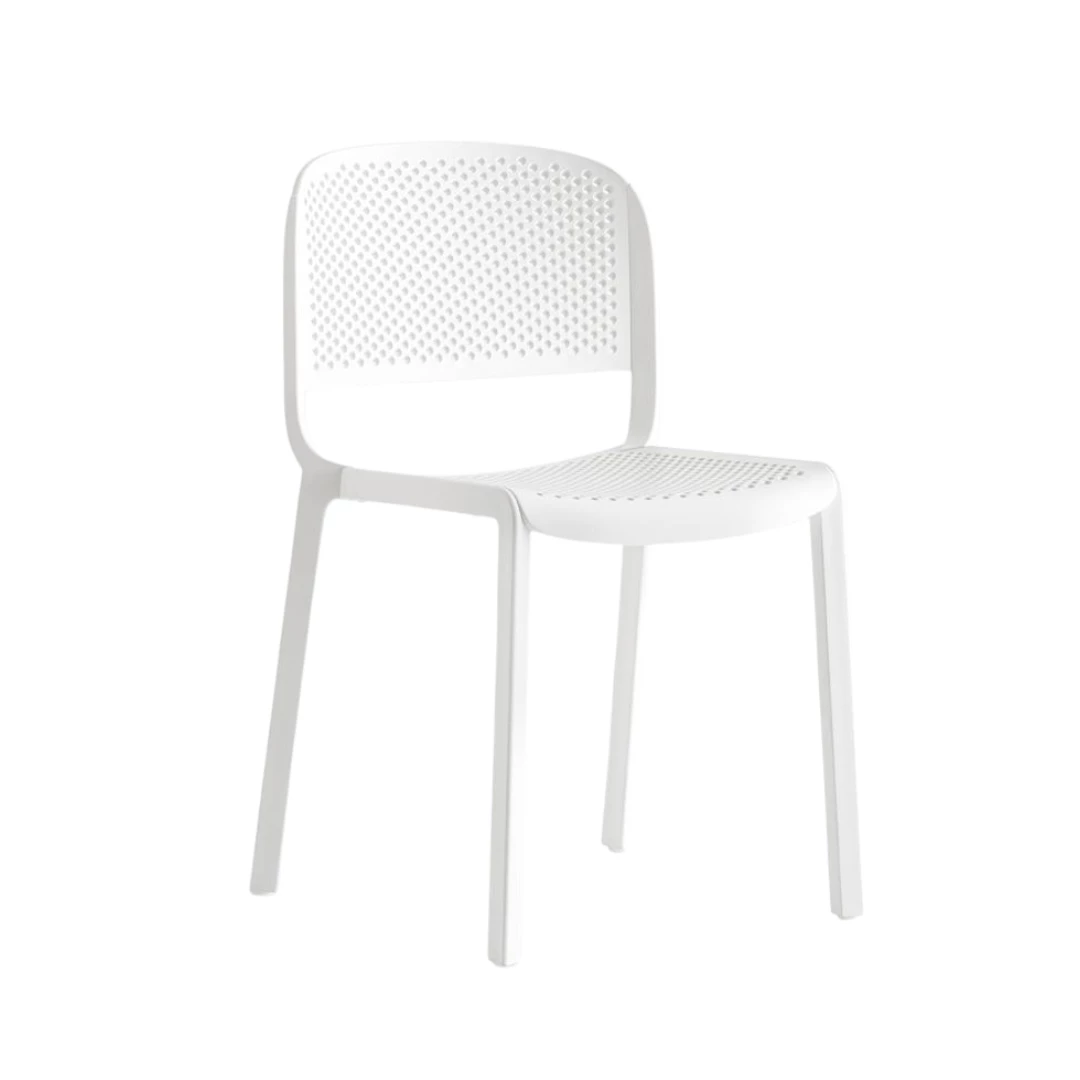 Dome 261 este un scaun de exterior din polipropilenă, cu șezut și spătar perforat pentru un plus de confort și design modern. Rezistent la UV, antistatic și suprapozabil, este ideal pentru terasele horeca. Disponibil în mai multe culori vibrante.