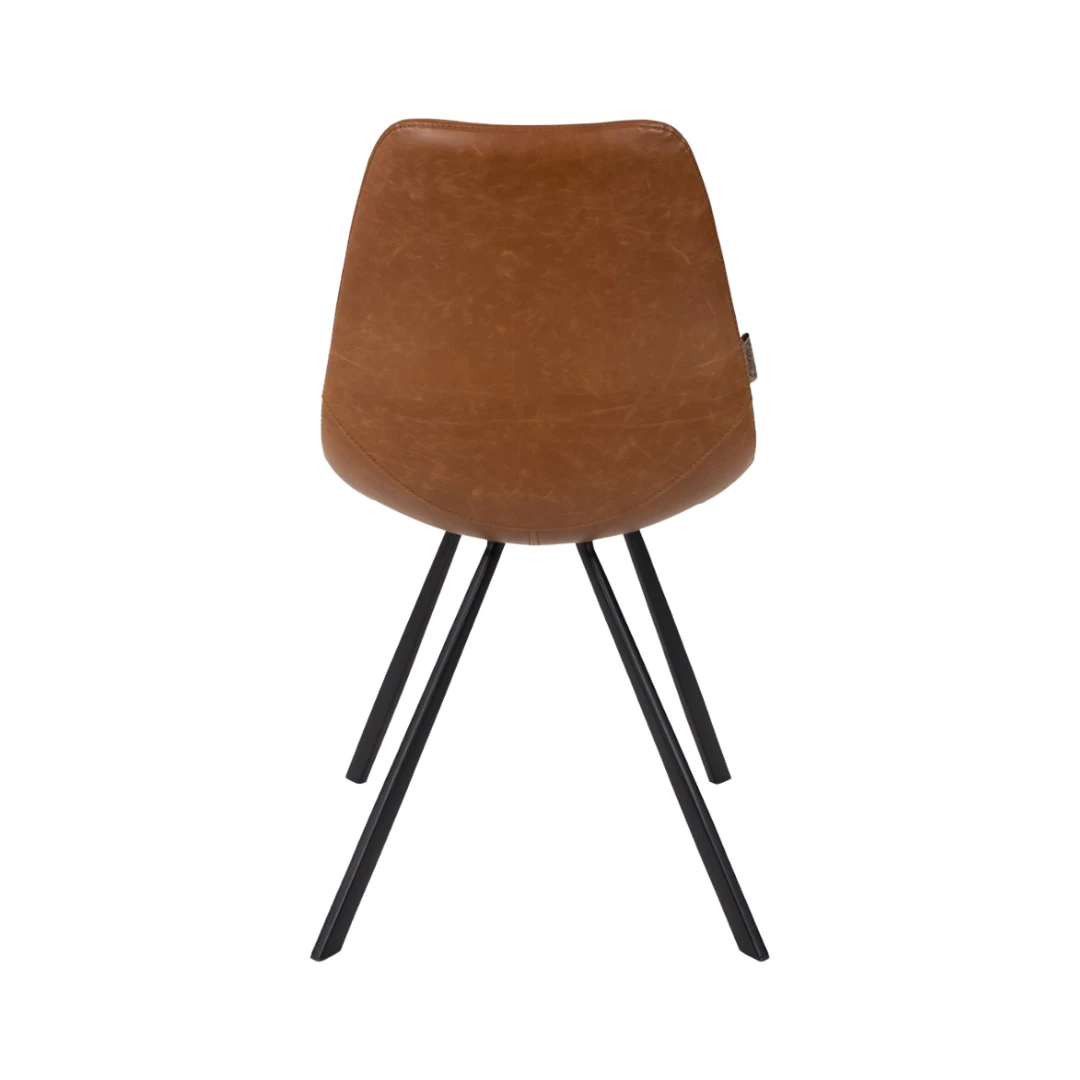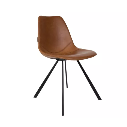 Cusăturile decorative ale șezutului cu aspect vintage, combinate cu liniile drepte ale bazei, oferă scaunului și taburetului un design contemporan elegant. Disponibil în piele sintetică neagră sau cognac.