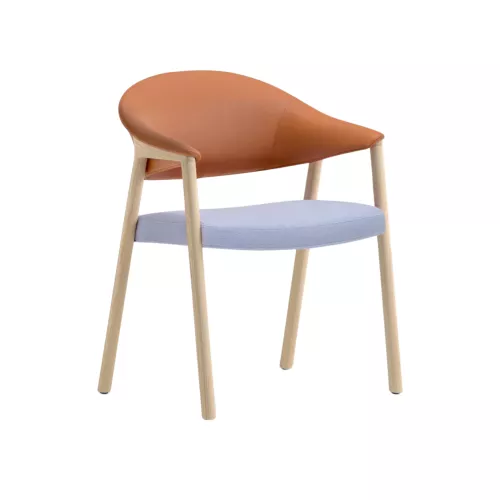 Cu linii fluide și o prezență seducătoare, acest scaun aduce un nivel nou de confort în orice spațiu elegant. Structura din lemn de frasin sau nuc american susține un spătar ergonomic din spumă poliuretanică turnată, ce oferă o susținere delicată și învăluitoare. Șezutul generos, realizat din spumă poliuretanică și întins pe benzi elastice, invită la relaxare prelungită. Sprijinit pe picioare ovale din lemn masiv, designul formează o siluetă armonioasă, ideală pentru proiecte de ospitalitate de prestigiu, restaurante rafinate și hoteluri, dar și pentru interioare rezidențiale sofisticate.