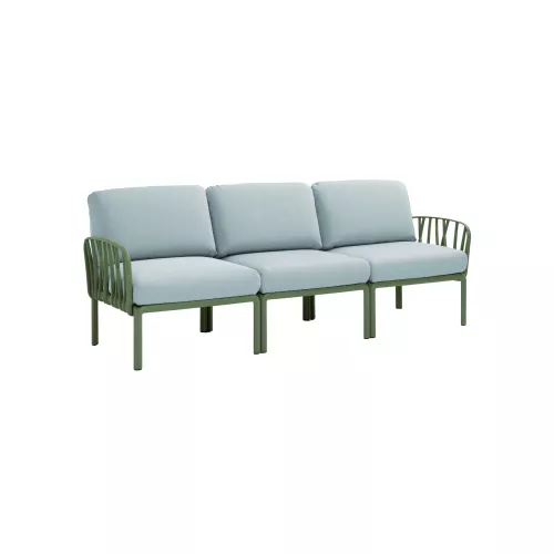 Komodo 3 Seater oferă confort și stil, cu un cadru din rășini de polipropilenă cu fibră de sticlă și aditivi UV. Kitul de perne este inclus în pachet. Disponibil în mai multe opțiuni de culoare: alb, antracit, tortora și agave pentru cadru, iar pernele sunt în culorile rosa quarzo și gri. Ideal pentru interior și exterior.